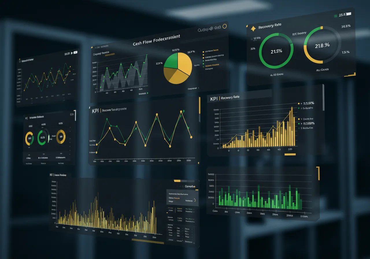 Dashboard de previsão de recuperação e fluxo de caixa.